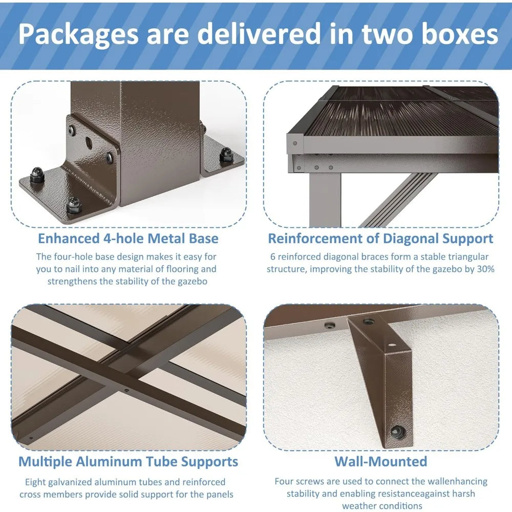 10x14 FT Gazebo, Hard Top Lean to Gazebo, Large Pergolas and Gazebos Clearance, Wall Mounted Gazebos Canopy Awnings