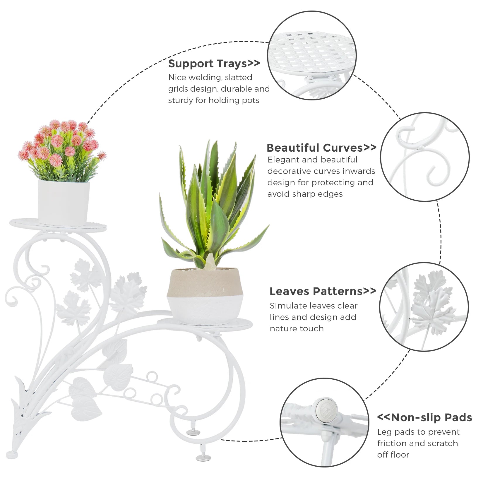 2PCS Rustproof Metal Plant Stand 4 Potted Flower Display Rack Shelf for Garden Balcony Office White and Black