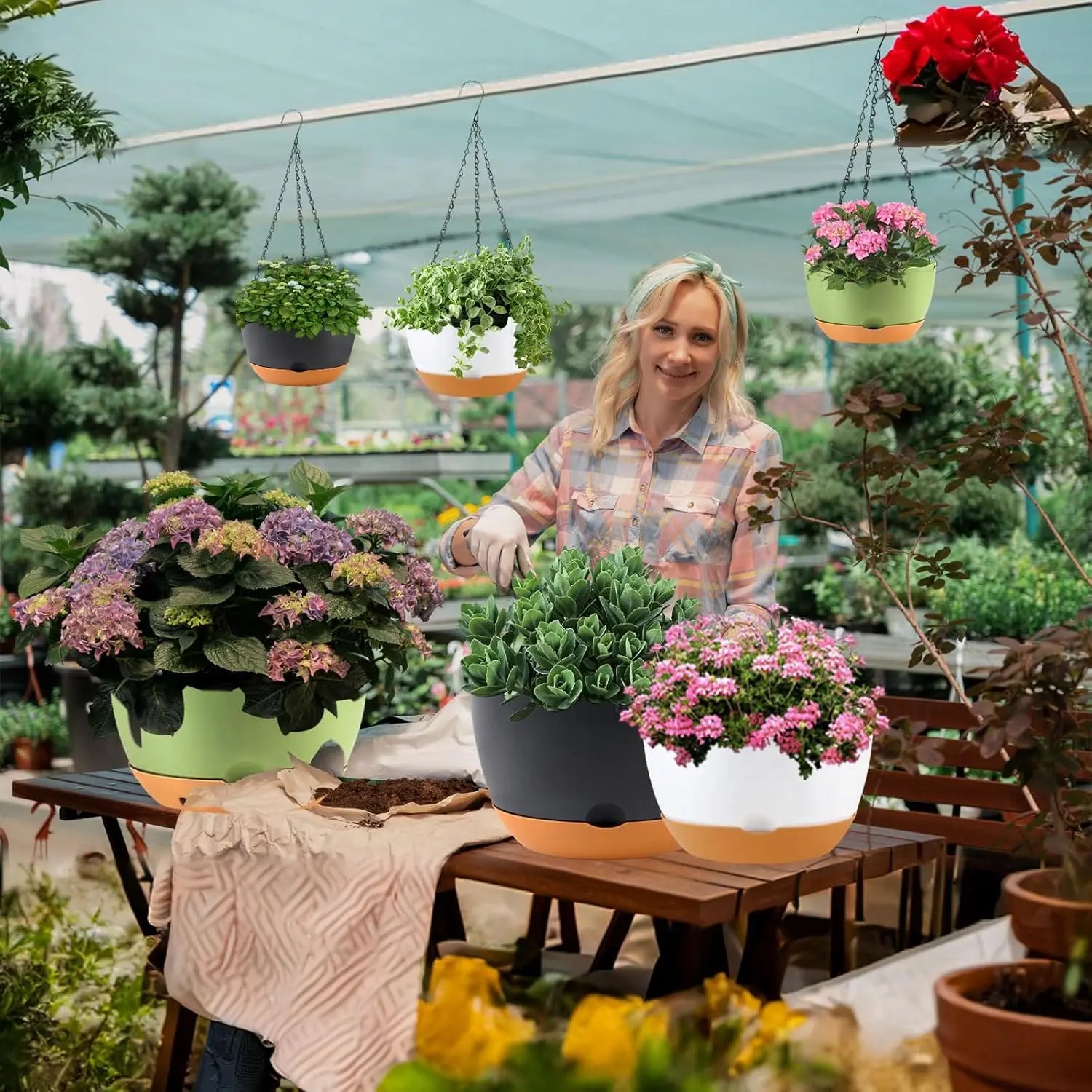 3-Pack 10-Inch Self-Watering Hanging Planters – Indoor/Outdoor Use