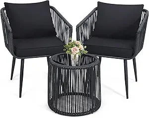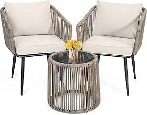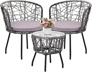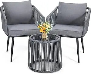 - 【UNIQUE ITALIAN DESIGN】 This unique boho style is the latest creation from our Italian design team. They have created a modern 3 piece patio bistro set which is functional, elegant, modern, and comfortable.