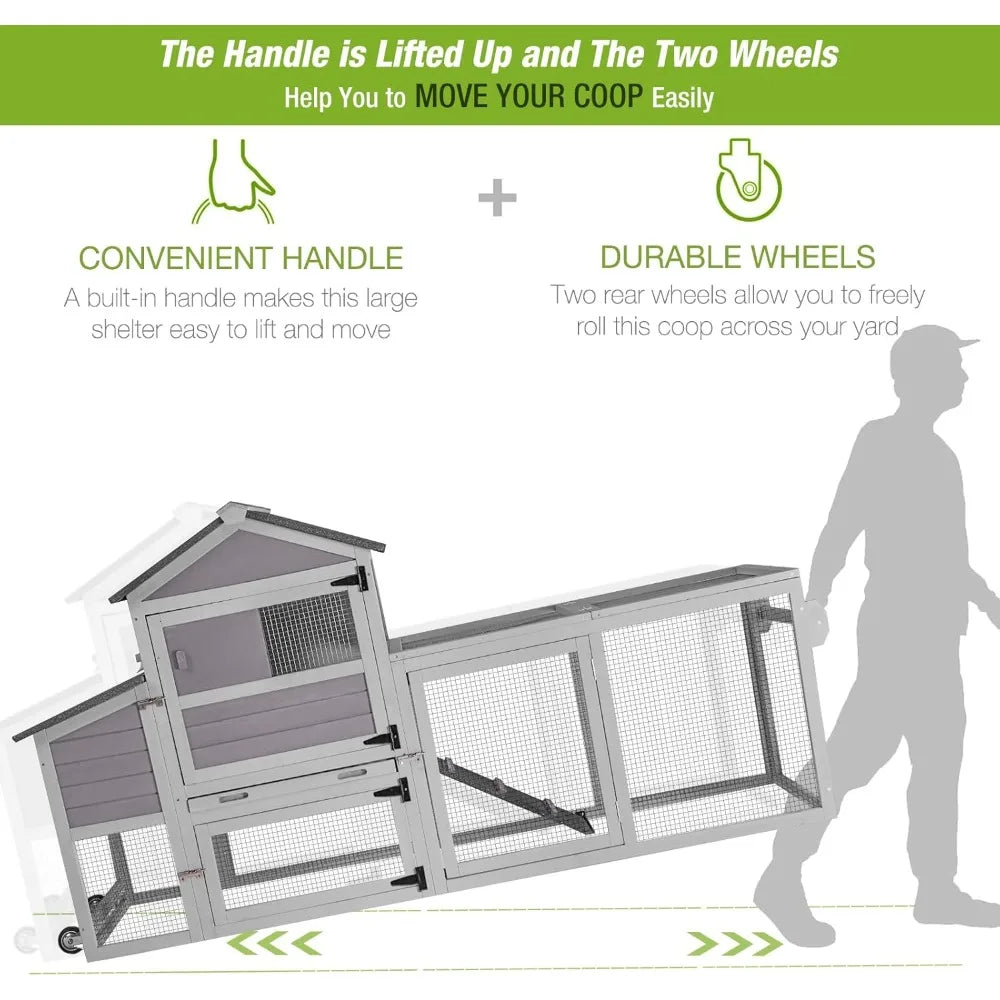 - Easy Movement: Two large metal wheels allow you to move the coop effortlessly. Move your chickens to fresh patches of grass with ample bugs for scratching.