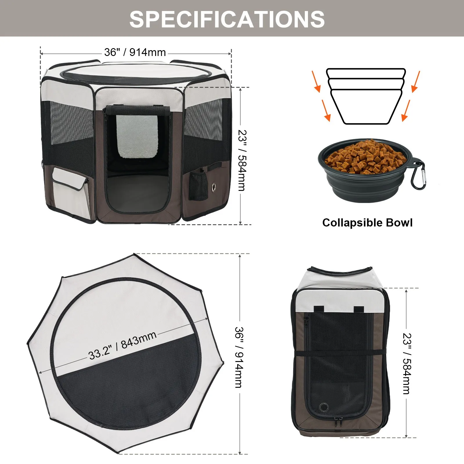 Foldable Pet Playpen 36 inch Portable Dog Playpen Crate Kennel for Cat