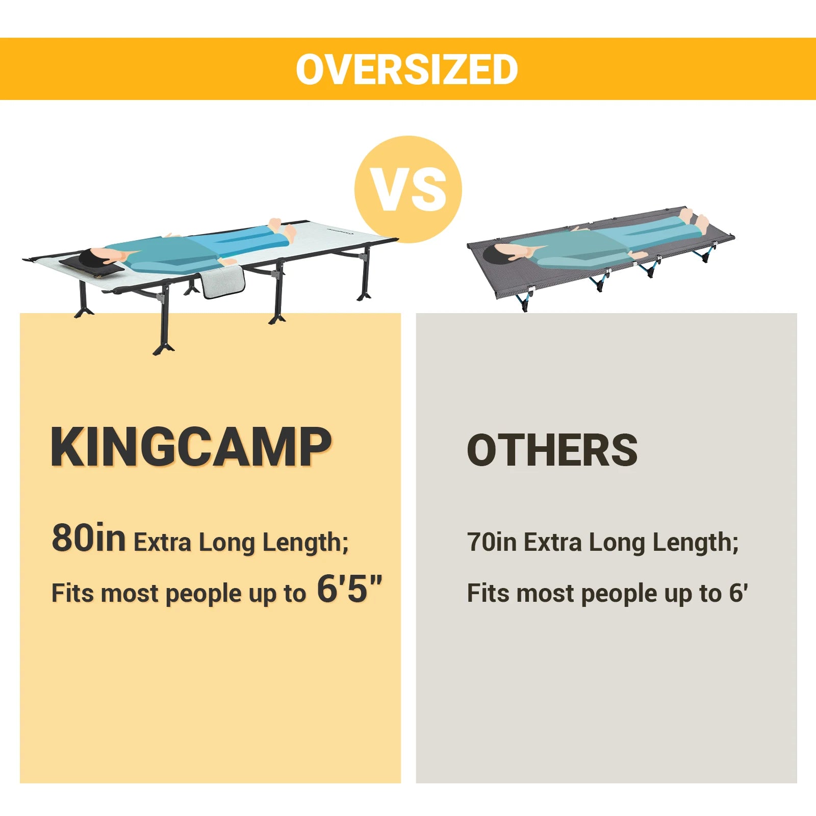 KingCamp Folding Bed Camping Bed, Outdoor Travel Camping, Luxury Plus Height, Ultra Light and Ultra Wide Portable