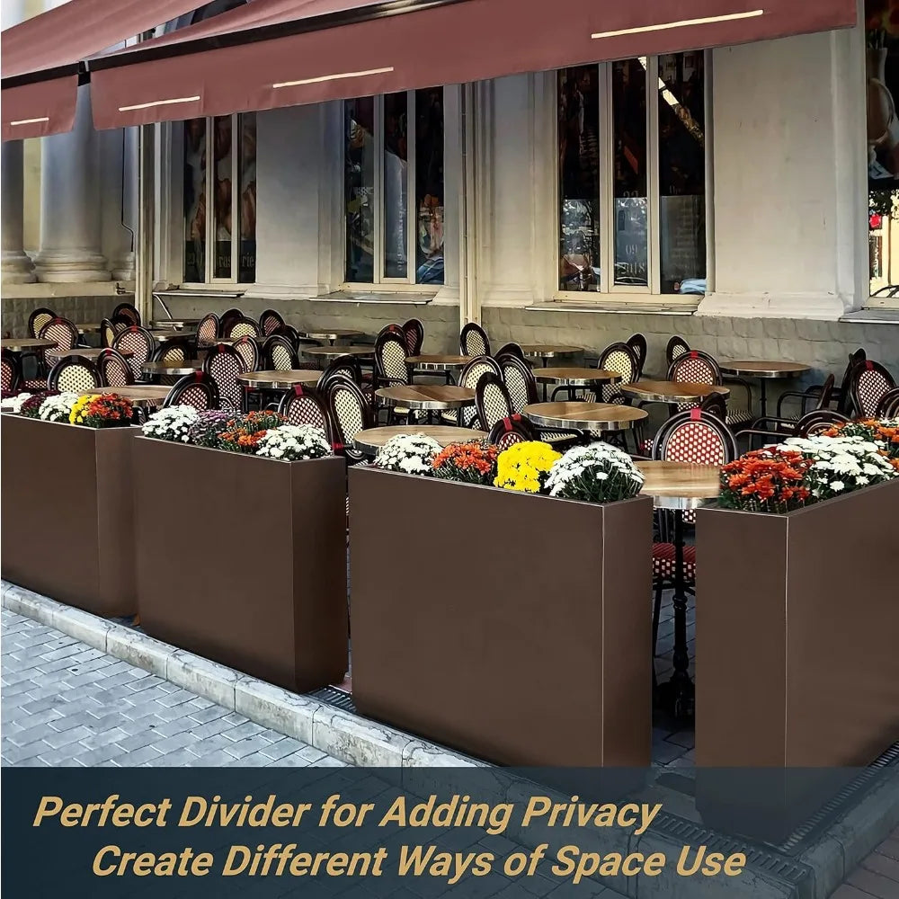 Metallic Heavy Planter for Outdoor Plants, 38Lx10Wx30H Inches Tall and Long Metal Divider Planter Box, Outdoor Planter