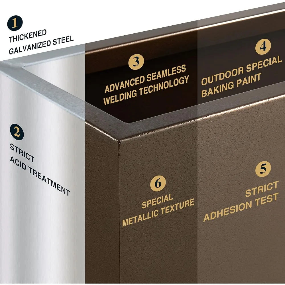 - 【Metal Plant Box】The surface of this planter box is coated with outdoor special baking paint, which uses an advanced powder method to give it an elegant metallic color and unique texture. It is manufactured from completely seam-welded, strong galvanized steel.