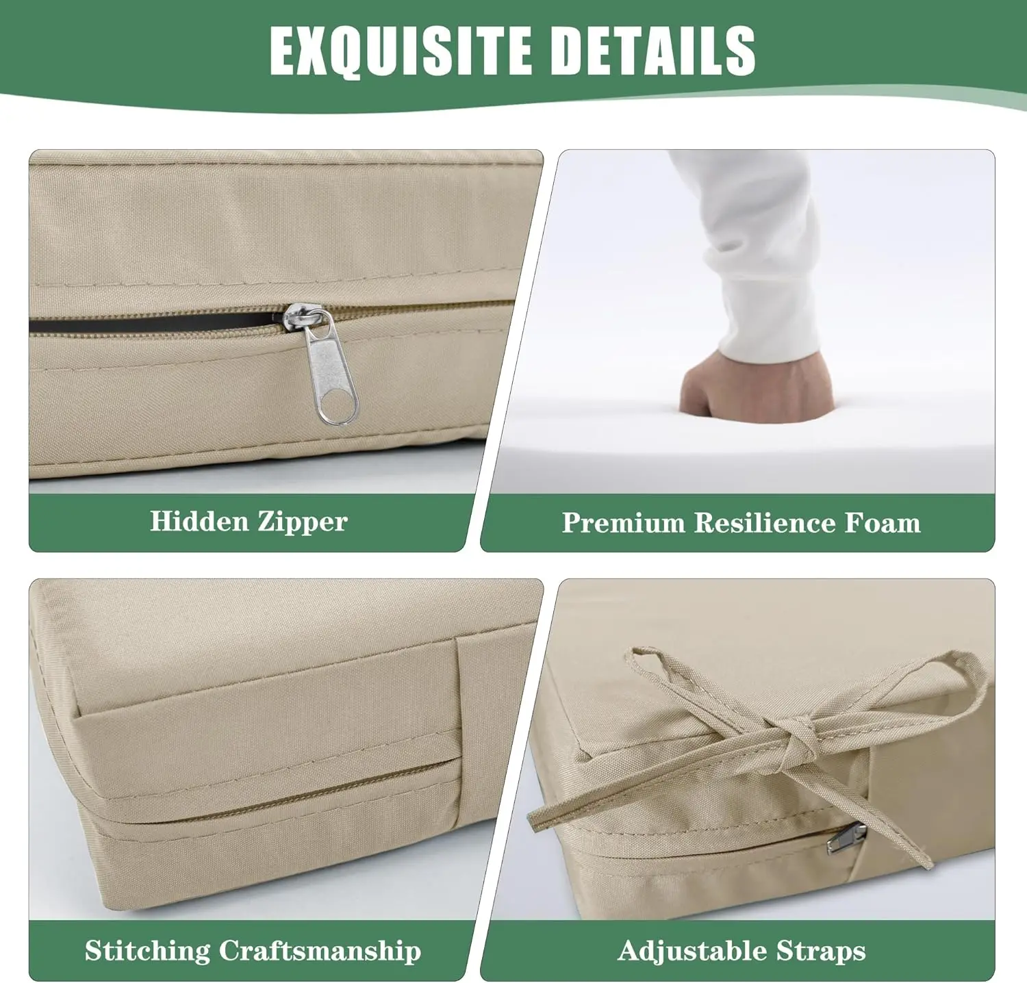 Waterproof & Fade-resistant: Crafted from high-quality polyester oxford fabric with a dual waterproof treatment, our outdoor cushions offer outstanding water resistance, allowing you to relax worry-free from rain showers or accidental spills. And these patio cushions also offer a certain level of fade resistance, helping them to retain their vibrant colors for longer