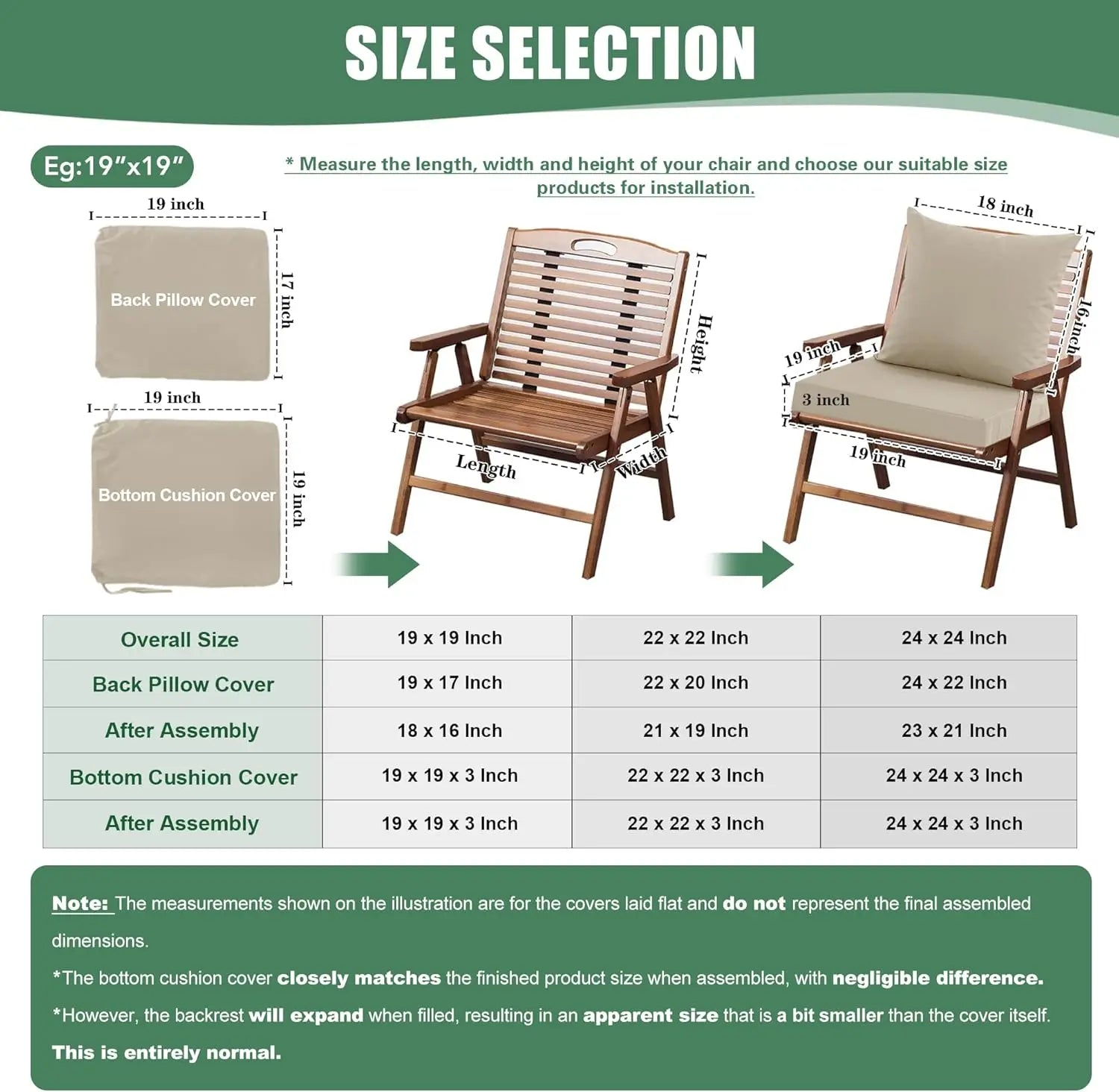 Easy Assembly & Care: This outdoor furniture cushions arrives in a compressed package for simple and rapid assembly, without the need for any special tools. Both seat and back cushions have removable covers, making daily cleaning convenient. The covers can be machine washed or hand washed; air drying is recommended