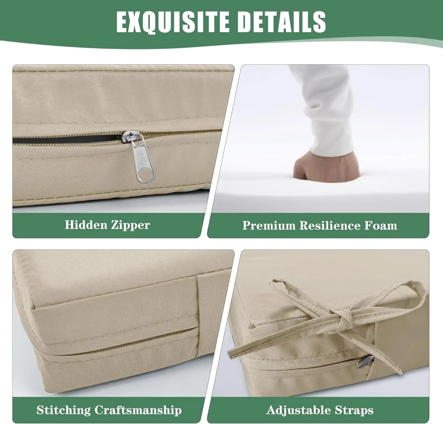 - Waterproof & Fade-resistant: Crafted from high-quality polyester oxford fabric with a dual waterproof treatment, our outdoor cushions offer outstanding water resistance, allowing you to relax worry-free from rain showers or accidental spills. And these patio cushions also offer a certain level of fade resistance, helping them to retain their vibrant colors for longer