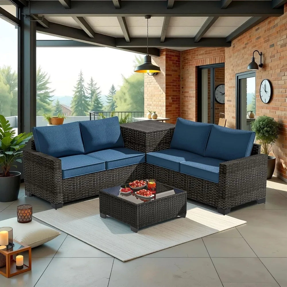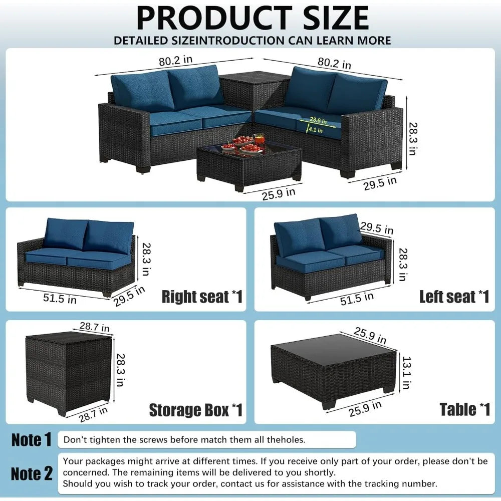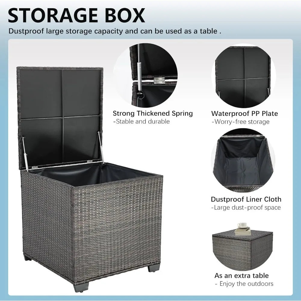 - Integrated Storage: Solution for your rattan patio furniture set keep your outdoor essentials safe and dry with our included storage box. Featuring a dustproof and waterproof lining, it's perfect for storing cushions, blankets, and more, ensuring everything stays clean and ready for use with your outdoor patio furniture set