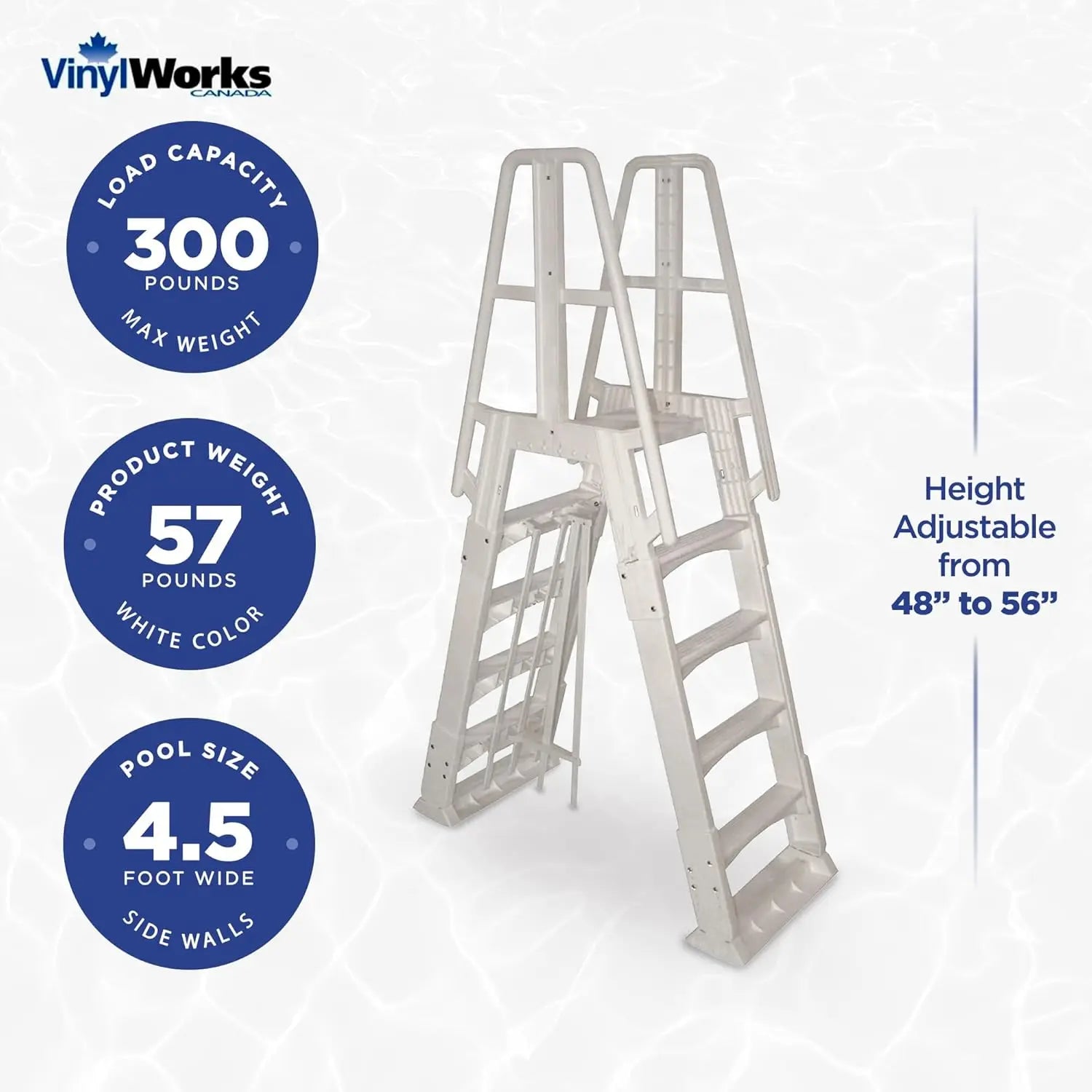 SLA A-Frame 48 to 56 Inch Adjustable Above Ground Swimming Pool Ladder Entry System with Slide Lock Barrier and Handrails, White